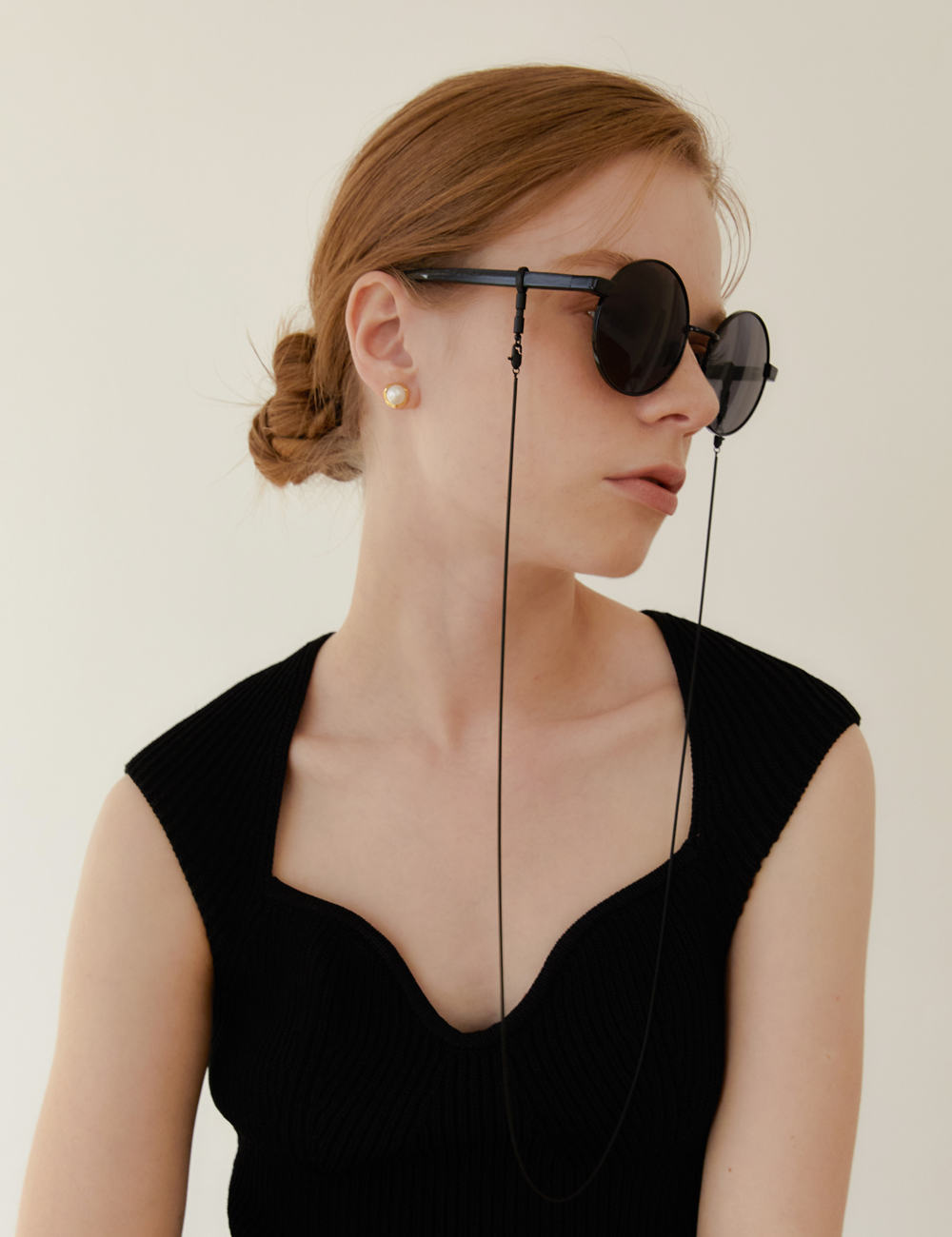 "Elevate your style with our Matte Black Snake Chain Eyewear Retainer. This lightweight, minimalist glasses strap secures your sunglasses with modern elegance. Handcrafted in Korea."
