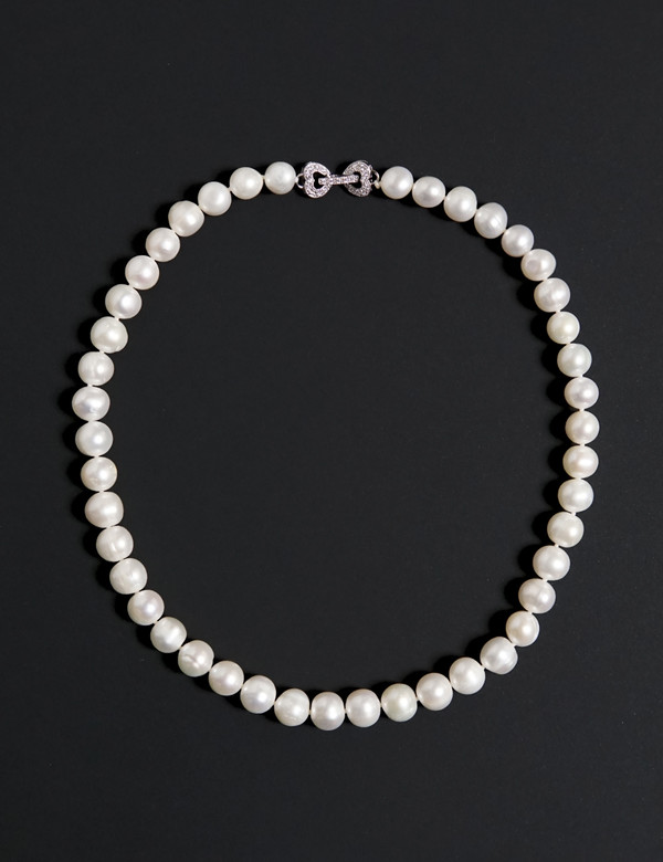 The incomplete organic form and the completely spherical pearl are mixed and matched or, the pearls from nature and artificially made metallic materials are mixed and matched as well.
